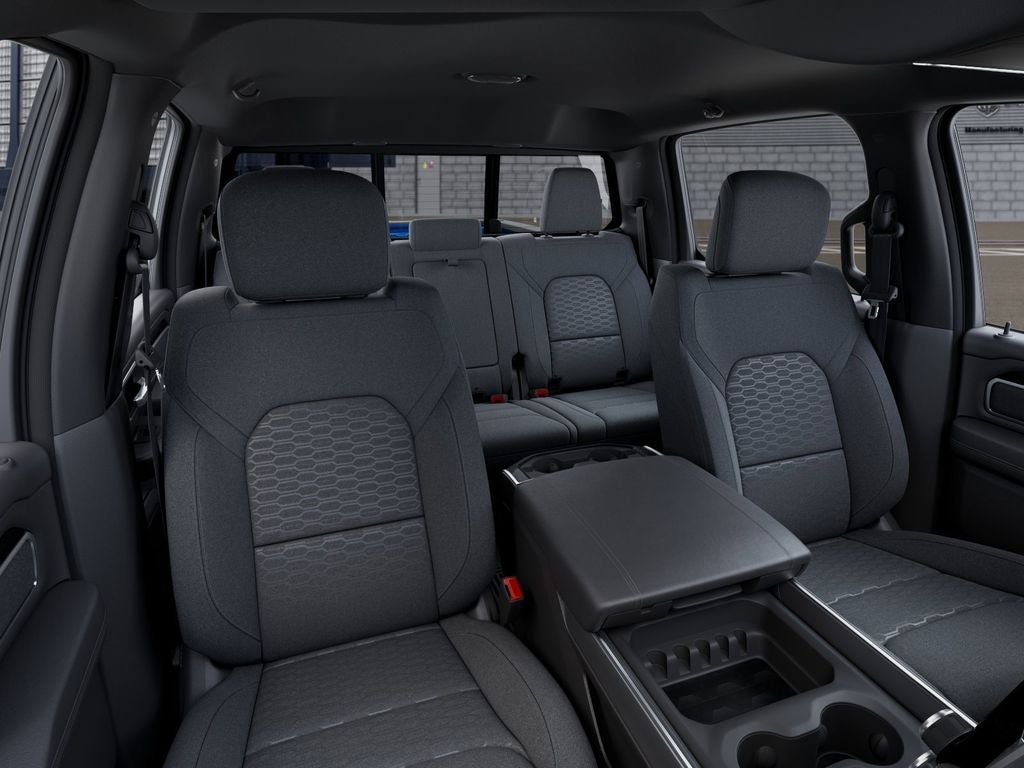 115V Auxiliary Power Outlet, 2nd Row in Floor Storage Bins, 3 Rear Seat Head Restraints, 4 Way Front Headrests, 4-Wheel Disc Brakes, 400W Inverter, 48V Belt Starter Generator, 4G LTE Wi-Fi Hot Spot, 6 Speakers, ABS brakes, Air Conditioning, Alloy wheels, AM/FM radio, Anti-Spin Differential Rear Axle, Apple CarPlay, Apple CarPlay/Android Auto, Auto High-beam Headlights, Auto Power-Folding Mirrors, Auto-Dimming Exterior Driver Mirror, Auto-Dimming Rear-View Mirror, Big Horn Level 1 Equipment Group, Black Exterior Mirrors, Black Premium Power Mirrors, Body Color Fender Flares, Brake assist, Bucket Seats, Bumpers: chrome, Center Console Parts Module, Cloth Bucket Seats, Compass, Connectivity - US/Canada, Convex Wide-Angle Exterior Mirror Insert, Delay-off headlights, Deluxe Cloth Bucket Seats, Driver door bin, Dual front impact airbags, Dual front side impact airbags, Electronic Stability Control, Exterior Mirrors Courtesy Lamps, Exterior Mirrors with Heating Element, Exterior Mirrors with Supplemental Signals, Front anti-roll bar, Front Bucket Seats, Front Center Armrest w/Storage, Front fog lights, Front reading lights, Front Seat Back Map Pockets, Front wheel independent suspension, Full Length Floor Console, Fully automatic headlights, Global Telematics Box Module, Glove Box Lamp, Google Android Auto, GPS Antenna Input, Heated door mirrors, Heated Front Seats, Heated Steering Wheel, Illuminated entry, Integrated Center Stack Radio, Integrated Voice Command with Bluetooth®, Leather Wrapped Steering Wheel, Low tire pressure warning, Manual Adjust 4-Way Driver Seat, Manual Adjust 4-Way Front Passenger Seat, Manual Folding Exterior Mirrors, Manufacturer's Statement of Origin, MOPAR Front and Rear Rubber Floor Mats, MyFlexCare Service Plan, Occupant sensing airbag, Outside temperature display, Overhead airbag, Overhead console, Panic alarm, ParkView Rear Back-Up Camera, Passenger door bin, Passenger vanity mirror, Power 2-Way Driver Lumbar Adjust, Power Adjust 8-Way Driver Seat, Power Adjustable Pedals, Power door mirrors, Power steering, Power windows, Quick Order Package 27Z Big Horn, Radio data system, Radio: Uconnect 5 W with 8.4 Display, RAM Grille Badge - Chrome, Rear 60/40 Folding Seat, Rear anti-roll bar, Rear Center Armrest, Rear Dome with on/Off Switch Lamp, Rear Power Sliding Window, Rear step bumper, Rear Wheelhouse Liners, Rear Window Defroster, Remote keyless entry, SiriusXM Radio Service, SiriusXM Satellite Radio, Speed control, Steering Wheel Mounted Audio Controls, Sun Visors with Illuminated Vanity Mirrors, Supplier Part Tracking (J-1), Tachometer, Telescoping steering wheel, Tilt steering wheel, Traction control, Trailer Brake Control, Trip computer, Universal Garage Door Opener, USB Host Flip, Variably intermittent wipers, Voltmeter, Wheels: 18 x 8 Cast-Aluminum Painted. 16/20 City/Highway MPG Price includes: $3500 - 2026 National Retail Bonus Cash . Exp. 04/30/2026
