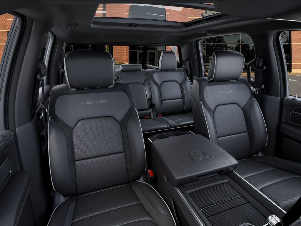 10 Speakers, 14.4 Touchscreen Display, 4-Wheel Disc Brakes, 4G LTE Wi-Fi Hot Spot, ABS brakes, Accent Color Door Handles, Accent Color Premium Power Mirrors, Accent Color Tailgate Handle, Active Noise Control System, Adjustable pedals, Air Conditioning, Alloy wheels, AM/FM radio: SiriusXM with 360L, Anti-Spin Differential Rear Axle, Apple CarPlay/Android Auto, Audio memory, Auto High-beam Headlights, Auto Power-Folding Mirrors, Auto-dimming door mirrors, Auto-Dimming Exterior Driver Mirror, Auto-dimming Rear-View mirror, Automatic temperature control, Bed Utility Group, Black Exterior Truck Badging, Black Headlamp Bezels, Black Interior Accents, Black Painted Exterior Mirrors Caps, Black Tail Lamp Bezels, Body Color Front Bumper, Body Color Rear Bumper with Step Pads, Brake assist, Bumpers: chrome, Chrome Exterior Mirrors, Cluster 12 TFT Color Display, Compass, Connected Travel and Traffic Services, Connectivity - US/Canada, Convex Wide-Angle Exterior Mirror Insert, Delay-off headlights, Dome Dual LED Reading Lamp, Driver door bin, Driver vanity mirror, Dual Exhaust with Black Tips, Dual front impact airbags, Dual front side impact airbags, Dual-Pane Panoramic Sunroof, Electronic Stability Control, Exterior 115V AC Outlet, Exterior Mirrors Approach Lamps, Exterior Mirrors Courtesy Lamps, Exterior Mirrors with Heating Element, Exterior Mirrors with Memory, Exterior Mirrors with Supplemental Signals, Front anti-roll bar, Front Bucket Seats, Front Center Armrest w/Storage, Front dual zone A/C, Front fog lights, Front Passenger Interactive Display, Front reading lights, Front wheel independent suspension, Fully automatic headlights, Garage door transmitter, GPS Navigation, Grille Surround 3 Black Texture 2 Black, Harman/Kardon 19 Speaker Premium Sound, Heated door mirrors, Heated front seats, Heated rear seats, Heated steering wheel, Illuminated entry, Integrated Center Stack Radio, Integrated Voice Command with Bluetooth®, Laramie Level 2 Equipment Group, Leather steering wheel, Leather Trimmed Bucket Seats, LED Dome/Reading Lamp, Low tire pressure warning, Manufacturer's Statement of Origin, Memory seat, MOPAR 4 Adjustable Cargo Tie-Down Hooks, Mopar Black Tubular Side Steps, MOPAR Front and Rear Rubber Floor Mats, MOPAR Spray in Bedliner, MyFlexCare Service Plan, Navigation System, Night Edition, Occupant sensing airbag, Off-Road Information Pages, Outside temperature display, Overhead airbag, Overhead console, Panic alarm, ParkView Rear Back-Up Camera, Passenger door bin, Passenger vanity mirror, Pedal memory, Pirelli Brand Tires, Power door mirrors, Power driver seat, Power passenger seat, Power steering, Power Tailgate, Power windows, Proximity Approach/Departure Lamps, Quick Order Package 27H Laramie, Radio data system, Radio: Uconnect 5 Nav with 14.4 Display, Radio: Uconnect 5 Navigation with 12.0 Display, Rain Sensitive Windshield Wipers, RAM Grille Badge - Black, RAM Grille Badge - Chrome, Rear anti-roll bar, Rear reading lights, Rear seat center armrest, Rear step bumper, Rear Wheelhouse Liners, Remote keyless entry, Security system, SiriusXM Radio Service, SiriusXM with 360L, Speed control, Split folding rear seat, Sport Performance Hood, Steering wheel mounted audio controls, Tachometer, Telescoping steering wheel, Tilt steering wheel, Traction control, Trailer Brake Control, Trip computer, Turn signal indicator mirrors, USB Host Flip, Variably intermittent wipers, Ventilated front seats, Voltmeter, Wheels: 20 x 9 Premium Paint/Polish, Wheels: 22 x 9 Forged Aluminum. 16/20 City/Highway MPG Price includes: $1000 - 2026 National Bonus Cash . Exp. 03/31/2026 $3500 - 2026 National Retail Bonus Cash . Exp. 03/31/2026