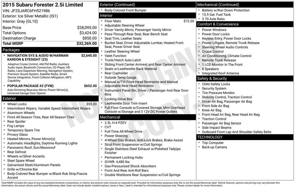 Don't miss the opportunity to experience the exceptional versatility, technology, and style of this 2015 Subaru Forester 2.5i Limited. Schedule a test drive today and discover the perfect SUV to elevate your driving experience.