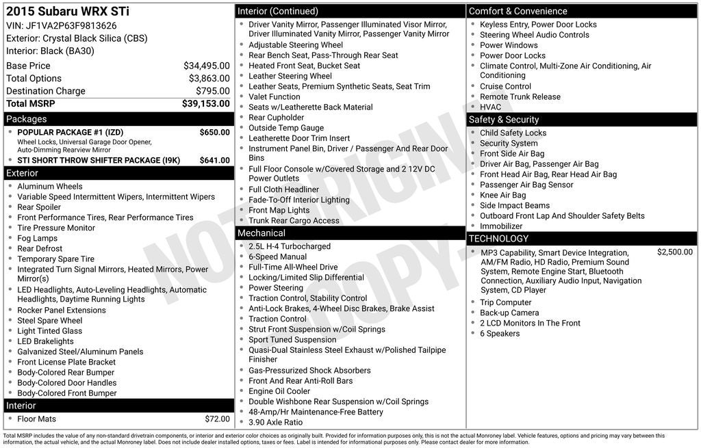 - Performance Design Front Heated Bucket Seats -inc: height adjustable driver's seat, height and tilt adjustable head restraints w/embossed STI logo, and front passenger seatback pocket