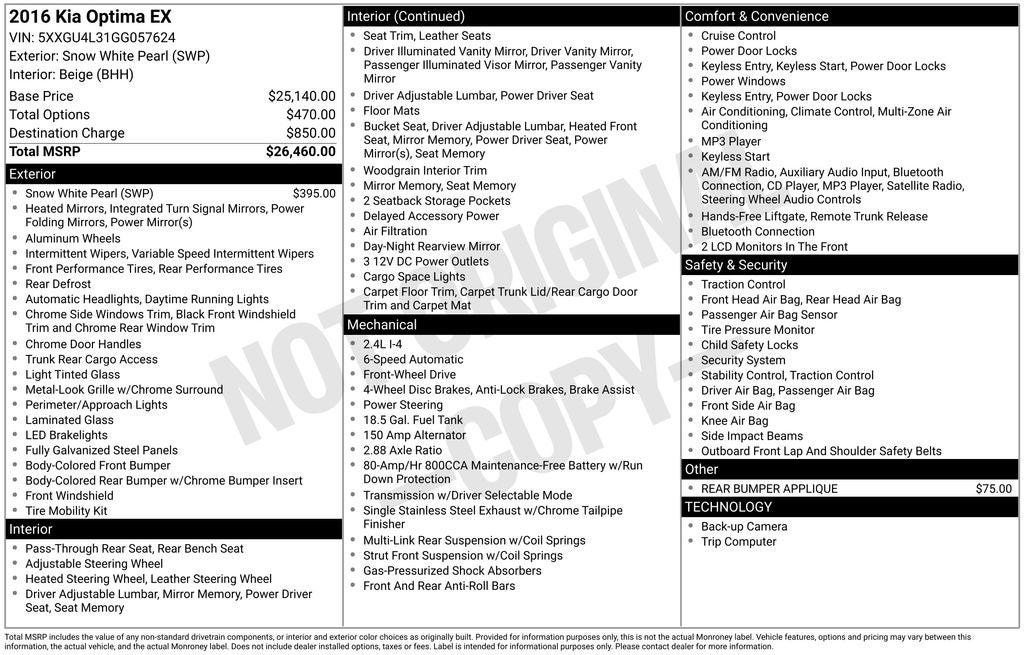 - Vehicle Name: Kia Optima
