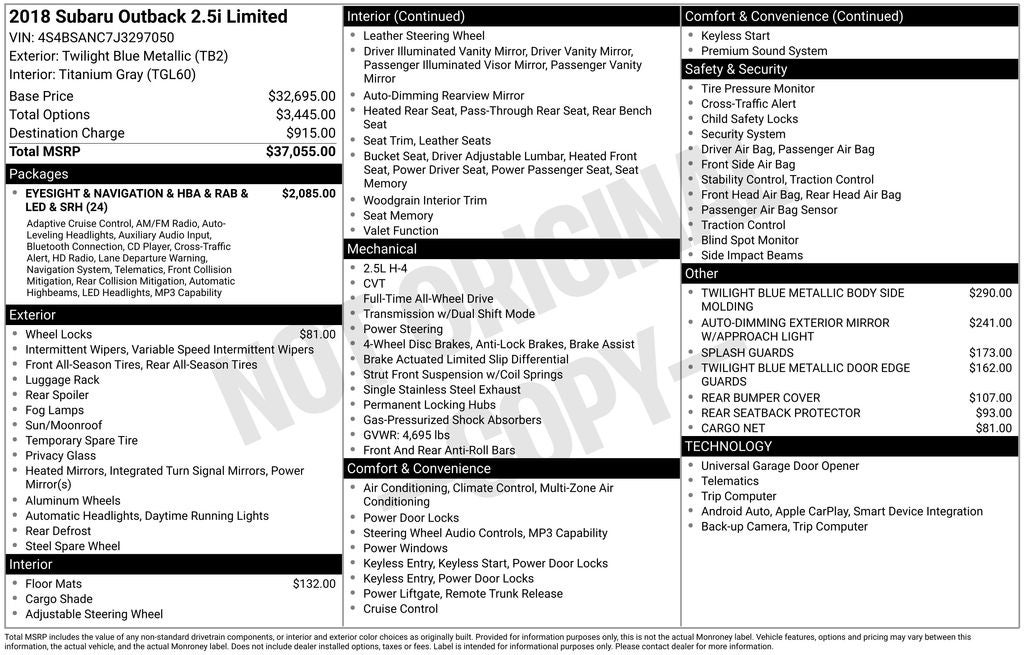 - Vehicle Name: Subaru Outback