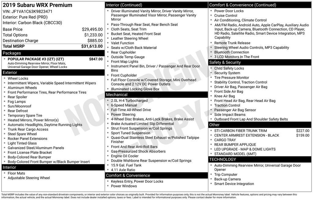 - Vehicle Name: Subaru WRX