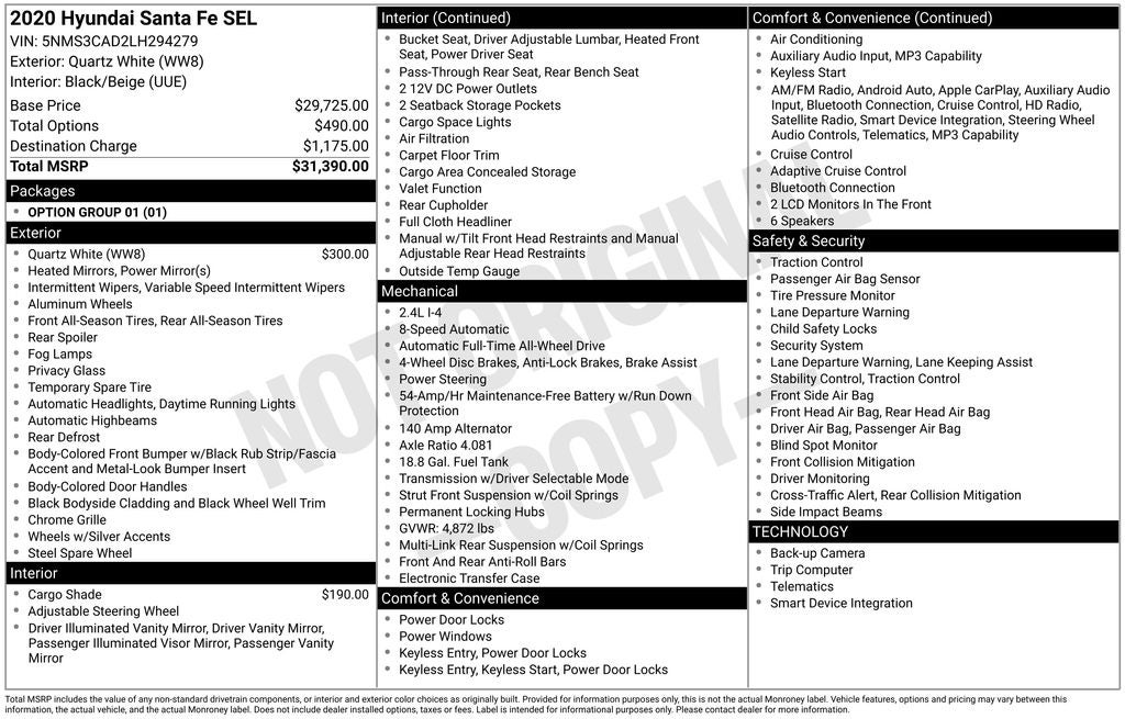 Whether you're embarking on a family road trip or navigating the daily commute, this 2020 Hyundai Santa Fe SEL is the perfect companion. Experience the perfect blend of style, technology, and capability that will elevate your driving experience. Visit our showroom today and let us demonstrate why this Santa Fe is the ideal choice for your next vehicle.