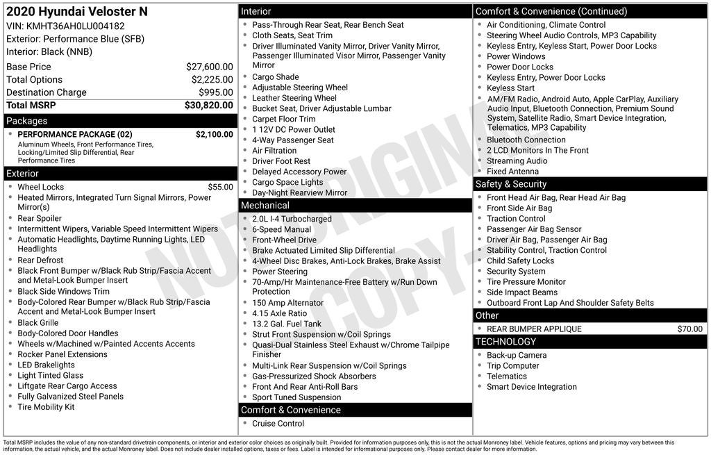Whether you're carving through canyons or commuting to the office, the 2020 Hyundai Veloster N is a true performance icon that will elevate your driving experience. Schedule a test drive today and discover the power and precision that make this hatchback a standout in its class.