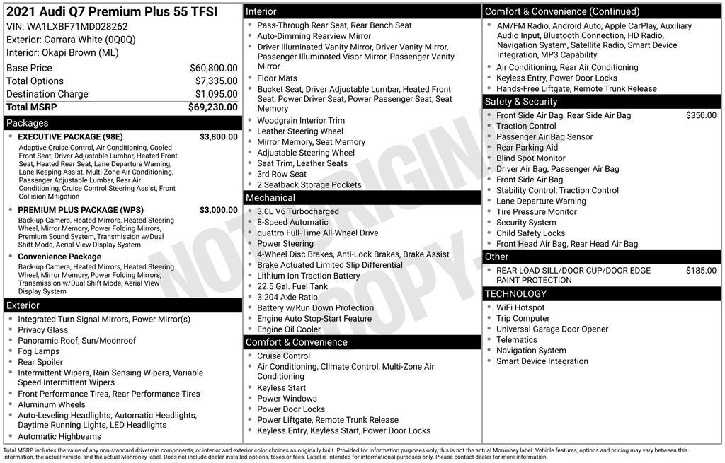 - Convenience Package -inc: Audi Phone Box w/Wireless Charging, signal booster, 3-Spoke Multifunction Steering Wheel w/Paddles, Heated, Ambient Interior Lighting Package, Heated Auto-Dimming Power Folding Exterior Mirrors, memory, Topview Camera System, virtual 360 view