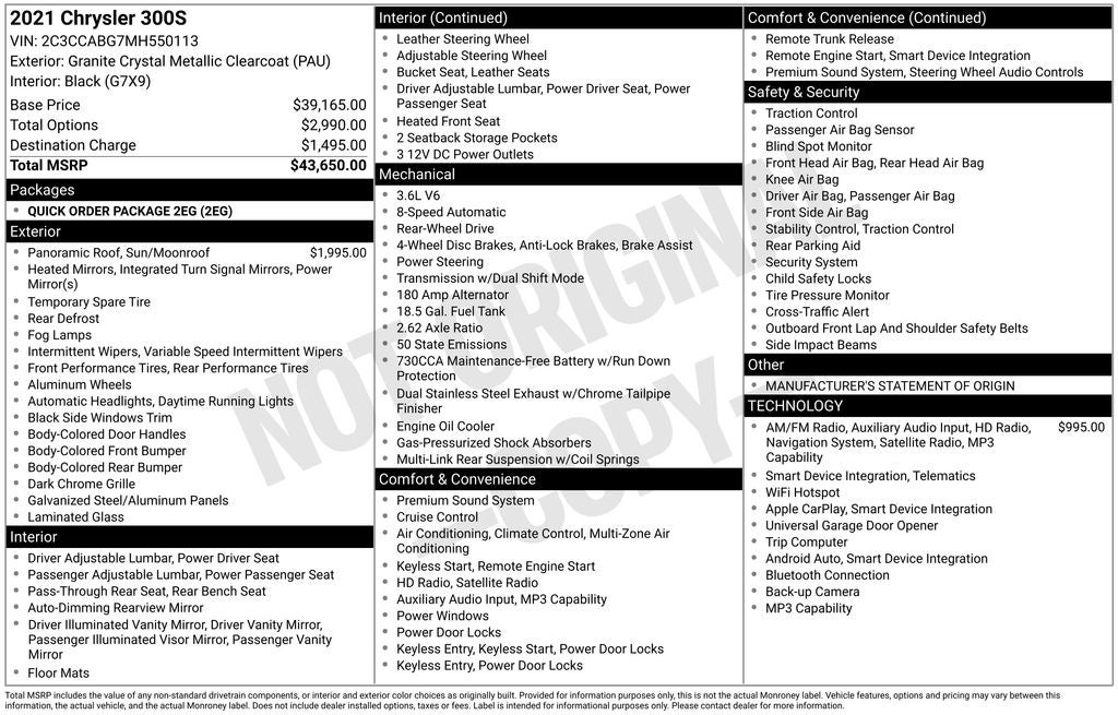 Whether you're seeking a dynamic daily driver or a sophisticated weekend cruiser, this 2021 Chrysler 300 S is an exceptional choice. Its combination of power, technology, and premium amenities make it a truly compelling option in the luxury sedan segment. Visit our showroom today to experience this remarkable vehicle for yourself and discover why it's the perfect fit for your driving needs.