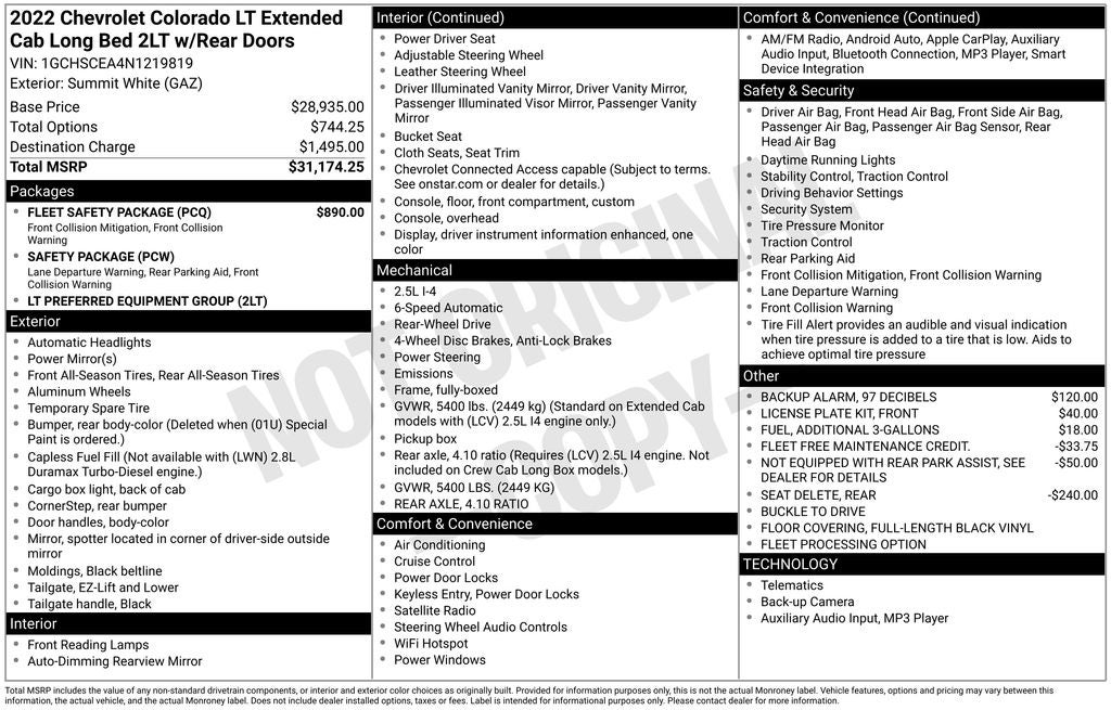 With a list price of $17,111, the 2022 Chevrolet Colorado LT Preferred Equipment Group 2LT is an exceptional value. Discover the perfect blend of capability, technology, and style today. Schedule a test drive and experience the difference for yourself.