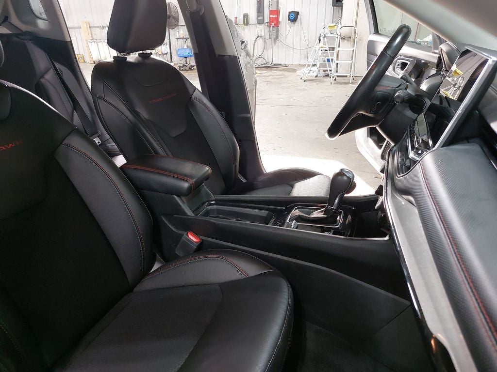 The Trailhawk Convenience Group takes this Compass to the next level, offering a host of premium amenities to enhance your driving experience. From the leather-wrapped steering wheel and heated front seats to the remote start system and 115V power outlet, this Compass Trailhawk is designed to keep you comfortable and connected on the road.