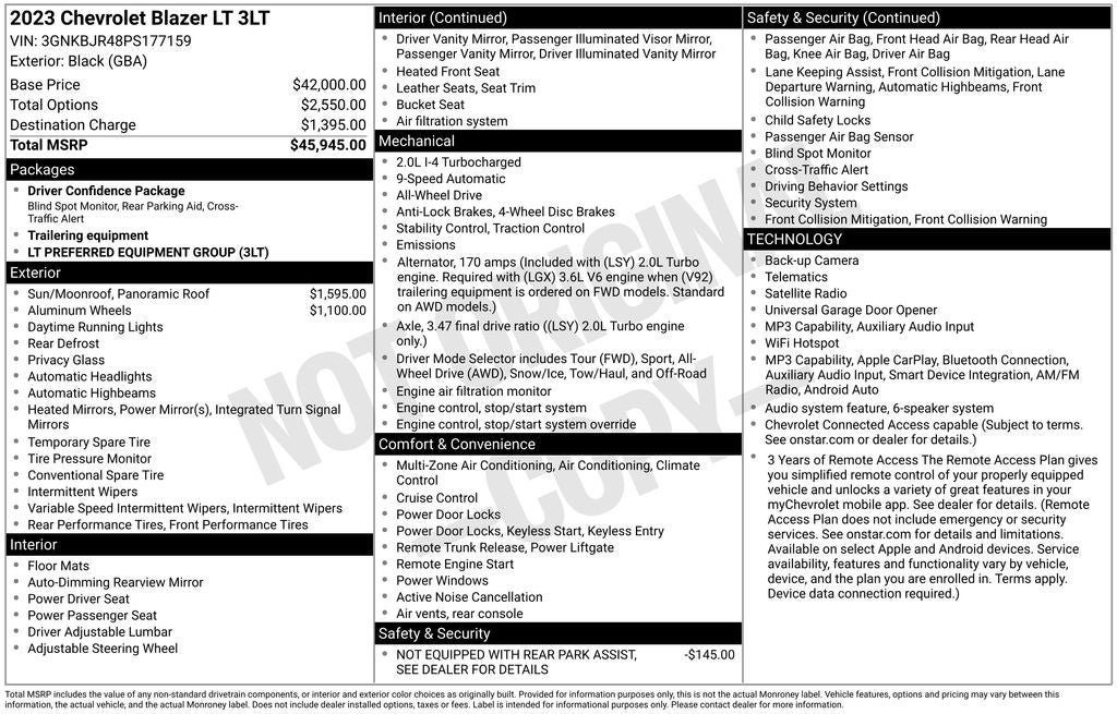 - Driver Confidence Package includes (UKC) Lane Change Alert with Side Blind Zone Alert, (UD7) Rear Park Assist and (UFG) Rear Cross Traffic Alert (Beginning October 17, 2022, certain vehicles will be forced to include (060) Not Equipped with Rear Park Assist, which removes Rear Park Assist. Does not include later dealer retrofit. See dealer for details or the window label for the features on a specific vehicle.)