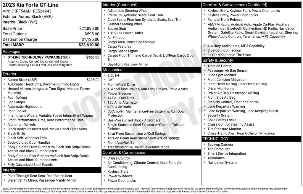 Whether commuting, running errands, or embarking on a weekend getaway, the 2023 Kia Forte GT-Line is the perfect companion. Discover the perfect balance of style, performance, and technology – visit our showroom today and experience it for yourself.