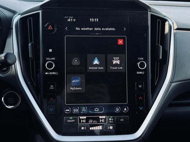 - Radio: Subaru STARLINK 11.6" Multimedia Plus Sys -inc: AM/FM stereo, HD Radio, multi-touch gesture high resolution display screen, voice activated controls, Bluetooth audio streaming and hands-free phone connectivity, Bluetooth hands-free SMS text messaging connectivity, iPod control capability, SiriusXM All Access Radio (4 months free trial included/subscription required after), SiriusXM Travel Link (4 months free trial included/subscription required after), smartphone integration: Android Auto and Apple CarPlay w/full screen view and wireless connection, USB and Over The Air (OTA) audio system update, steering wheel audio system and Bluetooth control switches, 6 speakers (2 dash panel tweeter, 2 front door and 2 rear door), illuminated 3.5mm auxiliary input jack, illuminated front USB A and C input/charge ports and illuminated rear USB A and C charge ports