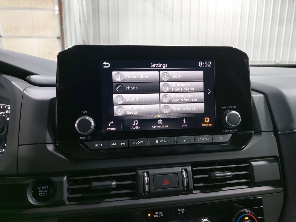 - Radio: AM/FM Audio System w/NissanConnect -inc: 6 speakers, Radio Data System (RDS), Apple CarPlay and Android Auto, 8" color display w/multi-touch control, SiriusXM satellite radio w/advanced audio features, 2 illuminated front USB connection ports (1 type A, 1 type C) for iPod interface and other compatible devices, Bluetooth® hands-free phone system and streaming audio, Speed-Sensitive Volume control (SSV), hands-free text messaging assistant and Siri Eyes-Free/Google Assistant voice recognition